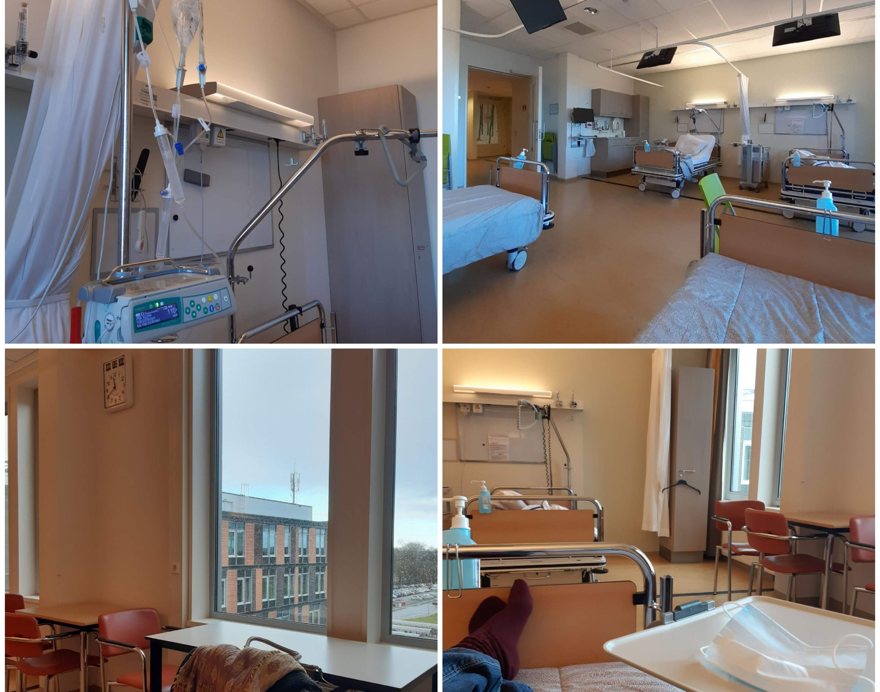 Een zaal voor gevorderden is een wereld op zichzelf. Hier wordt niet gepraat over pijn, angst, herstel of onzekerheid. Hier vind je (ook buiten Corona-tijd) geen bezoek of bloemen. Hier heerst berusting. Wel wil iedereen zo snel mogelijk weer weg. Naar huis.
