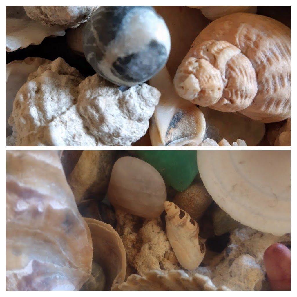 Ik zou niet meer weten waar welk steentje of schelpje vandaan komt. Het staat er niet op.
