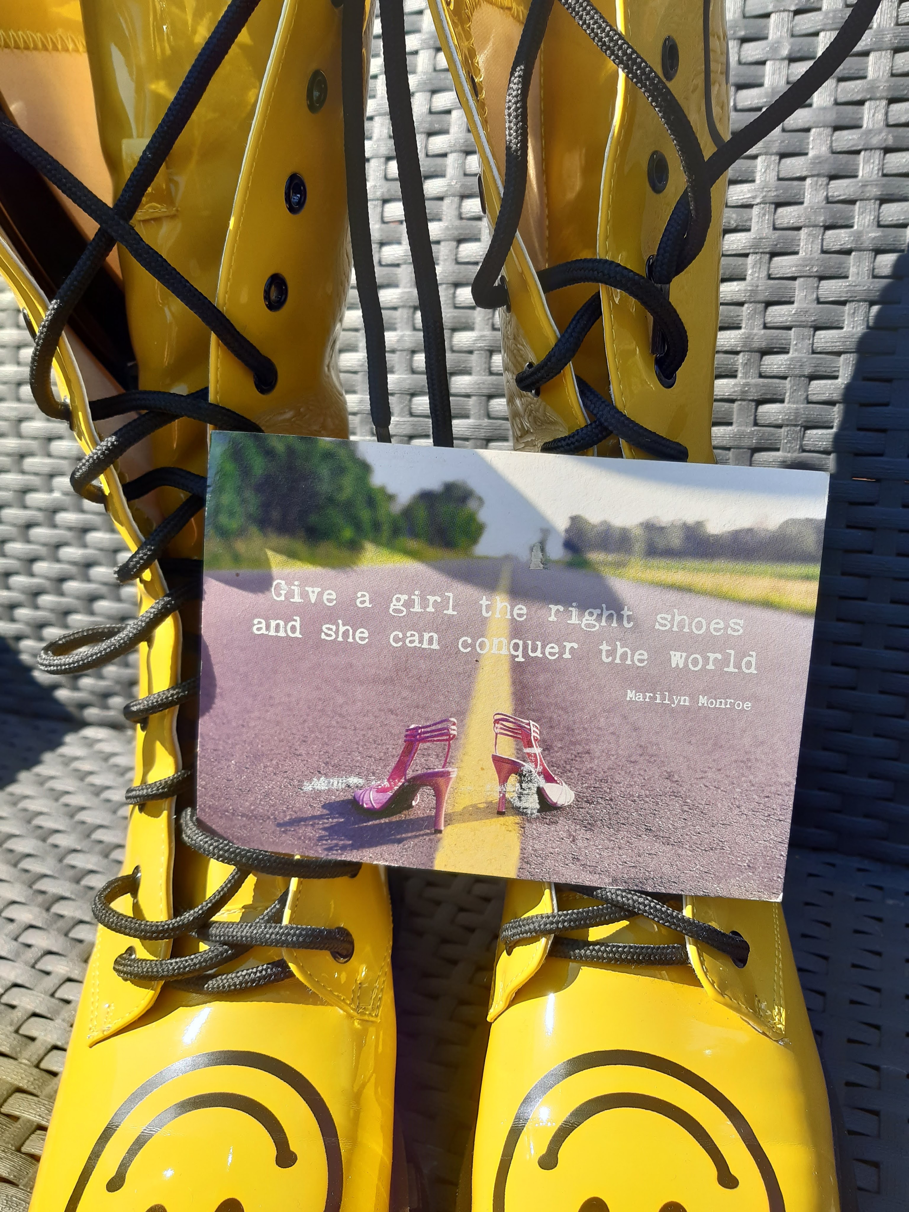 Ik krijg regelmatig leuke reacties op mijn laarzen, variërend van ‘zo, dàt is geel’ tot ‘die wil ik ook’. En zelf word ik er ook heel vrolijk van😄